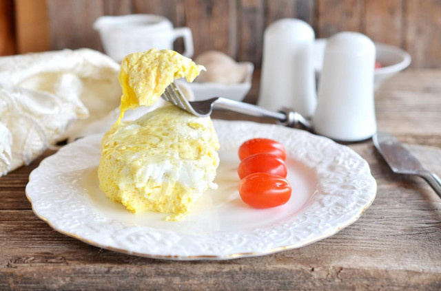 Готовый омлет аккуратно извлекают из воды, дают немного остыть и разрезают пакет. Порция выходит сытной и лёгкой, идеальной для занятых утр или совместного завтрака семьёй.