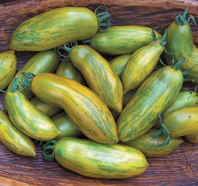 Окраска плодов меняется по мере созревания: зеленый фон с яркими полосками переходит в изумрудный цвет, полосы становятся янтарно-золотистыми. Зрелость часто определяют по упругости и легкому отделению от плодоножки, а не по цвету. Вкус сочетает пряность и фруктовые ноты, что делает плоды хорошими как в свежем виде, так и в заготовках.