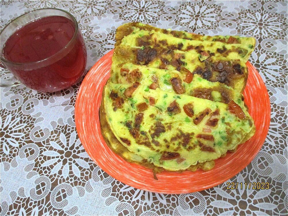 Что нужно под рукой — минимум ингредиентов и максимум вкуса. Яйца, молоко и мука составляют основу, к ним добавляются свежие помидоры, зеленый лук и тертый сыр. Тесто гуще блинов, чтобы лепешки держали форму и не расплывались на сковороде.