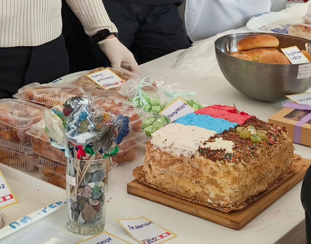 Гостям и жителям города были представлены: вкусная выпечка, изделия ручной работы, сувениры, брелоки и ароматное мыло. Также каждый желающий имел возможность написать слова поддержки и пожелания для солдат, чтобы поддержать их морально.