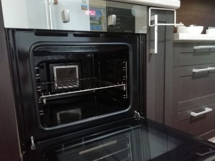Включите духовку на 10 минут при 100 °C, чтобы высушить и устранить запах моющего средства.