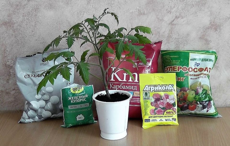 Зола также оказывается полезным удобрением для томатов. Можно раз в десять дней опудривать рассаду золой или использовать настой. Для его приготовления следует добавить 2 ст. ложки золы на 1 литр воды и настоять сутки, а затем процедить и поливать растения под корень. Первую подкормку следует делать через неделю после появления всходов, а последующие раз в две недели. Бывают ситуации хлороза (нехватки железа); это часто связано с неправильным световым режимом при досвечивании рассад. Поэтому важно не забывать о ночном отдыхе для растений.