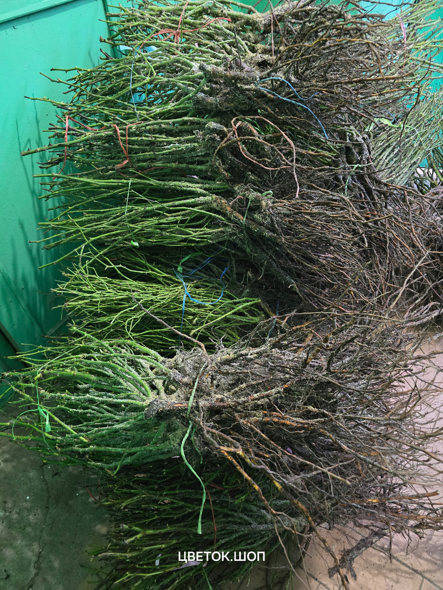 Саженцы роз, с которыми мы работаем, это экземпляры исключительно первого сорта. Им два года, и они бурно цвели летом на полях, где в естественных условиях создаются идеальные условия для их роста. Так выглядит саженец в начале процесса: открытая корневая система и сильные кусты, достигающие 50 см в высоту.