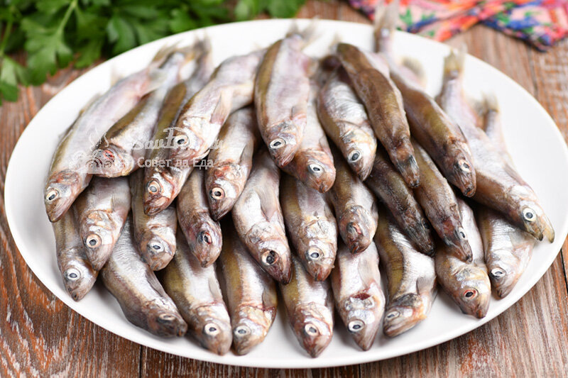 Для этого варианта подойдёт любая мелкая рыба, например, мойва весом 900 грамм. Сначала её необходимо разморозить и промыть, а затем посолить и поперчить. Далее: