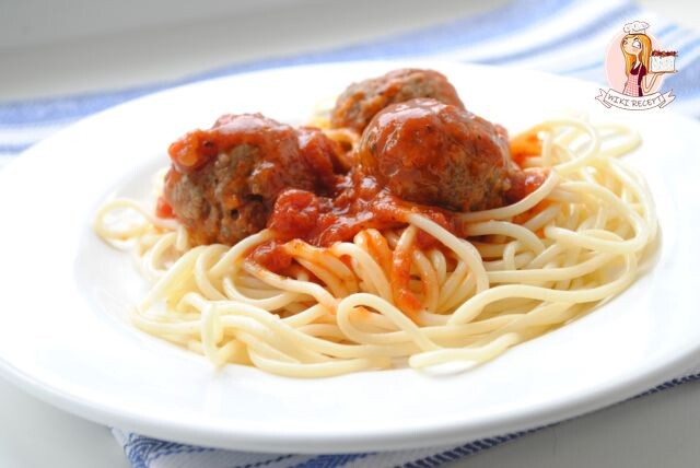 В то время как фрикадельки тушатся, следует отварить спагетти. Подавайте на больших тарелках: сначала уложите спагетти, сверху размещайте фрикадельки и поливайте томатным соусом из сковороды.