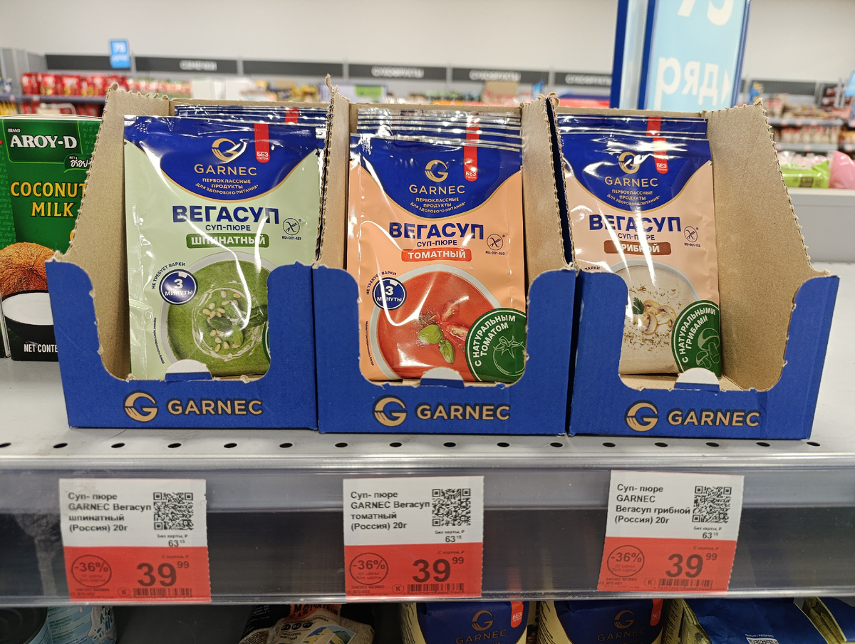 В одном из гипермаркетов "Лента" были замечены свежие супы Гарнец по довольно заманчивым ценам. Все три варианта встретились на полках, так что для тех, кто ищет вкусное и удобное решение, это отличный шанс.