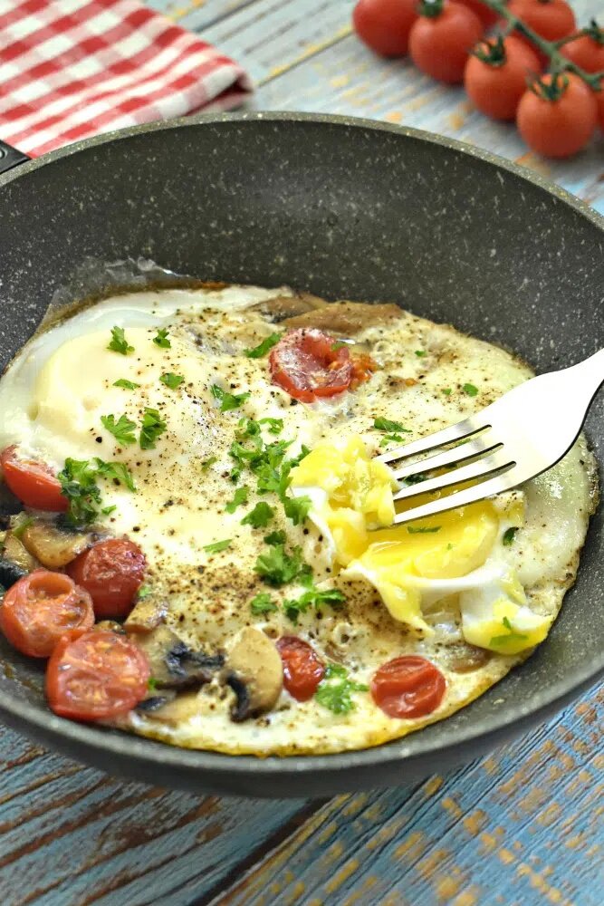 Яичница с грибами и помидорами черри: магнит для гурманов