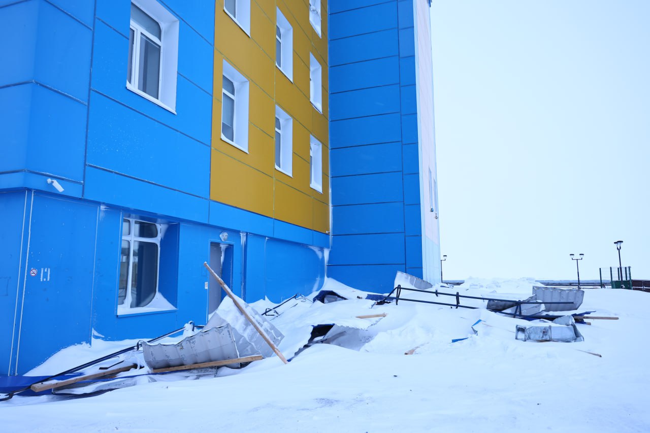 Выявлены повреждения на социальных объектах и жилых домах, включая сорванные части кровель и повреждение фасадов.