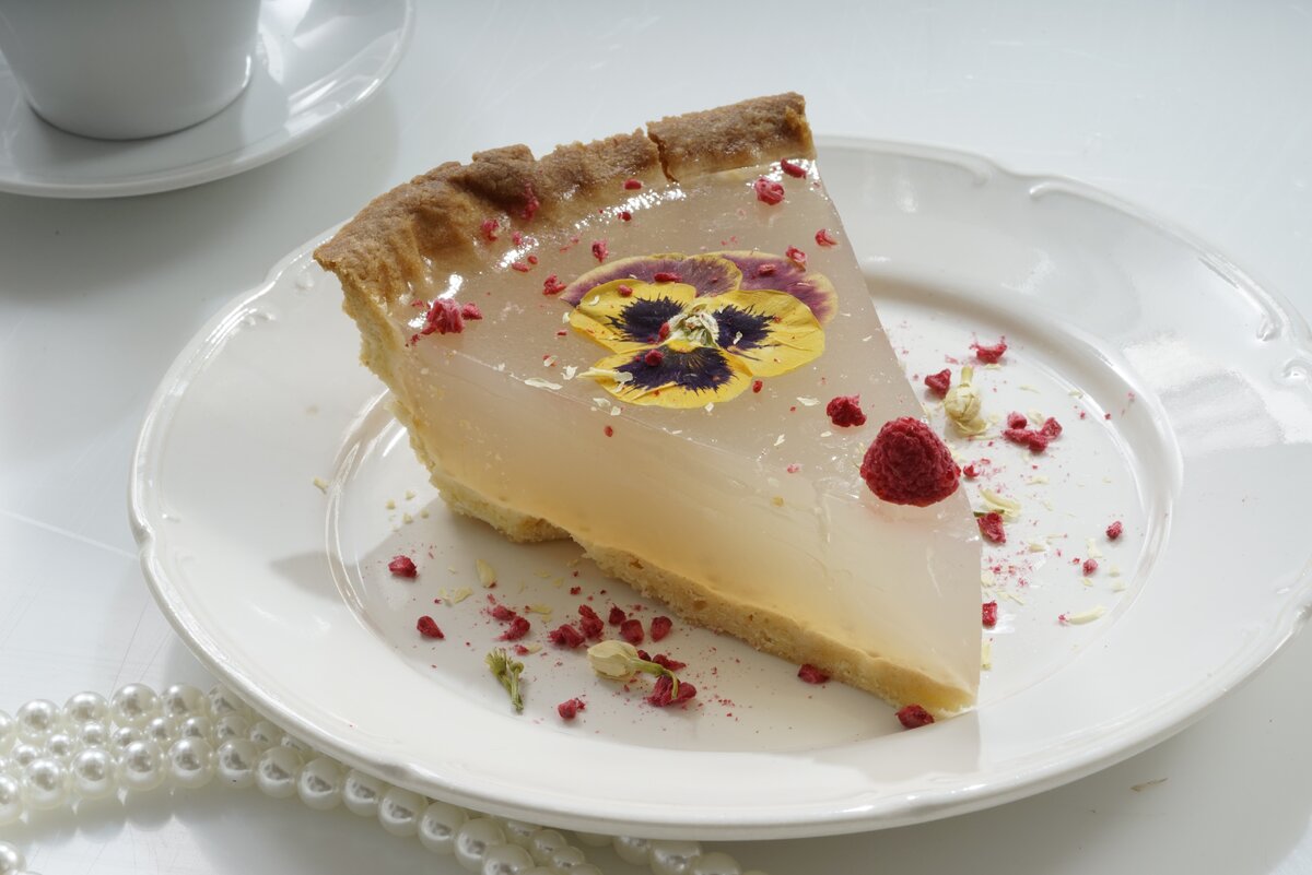 Сначала подготовьте все ингредиенты, а сливочное масло уберите в морозильник.Перемешайте пшеничную муку с сахарной пудрой, добавив миндальную муку и щепотку соли.Натрите ледяное сливочное масло на терке и быстро вмешайте его в мучную смесь, добиваясь консистенции, похожей на песок.Добавьте яйцо и сформируйте тесто в шар. Заверните его в пленку и уберите в холодильник на 40 минут.После охлаждения раскатайте тесто между двумя листами бумаги для выпечки до толщины 5 мм.Переложите тесто в форму диаметром 24 см, уберите излишки и дайте настояться в холодильнике 15 минут.Разогрейте духовку до 180 градусов, наколите тесто вилкой и готовьте 30 минут с грузом для выпечки.Для начинки снимите цедру с лимонов и смешайте с водой, сахаром и соком половины лимона. Доведите до кипения, процедите, добавьте агар-агар и варите минуту.Залейте готовую смесь на остывший тарт. Украсьте по желанию цветами или ягодами и оставьте в холодильнике на 1.5-2 часа до застывания.Наслаждайтесь десертом с чашкой чая!