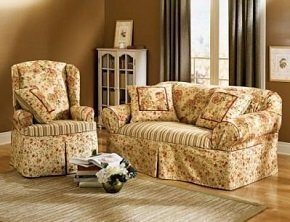 Создание выкройки можно начать с недорогой ткани, например, мешковины. Просто прикройте ею спинку и подлокотники, обведите мелом места сгибов и получите первую выкройку. Не забудьте после шитья или сметы проверить, как все смотрится на мебели, и подправить при необходимости.