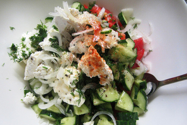 Начните с подготовки овощей: нарежьте помидоры и огурцы, а сладкий перец нарежьте кубиками. Лук рекомендуется нарезать тонкими полукольцами. Салатные листья просто порежьте или рвите руками на небольшие кусочки для лучшей текстуры.Объедините все нарезанные овощи в салатнике. Чтобы ваш салат был по-настоящему вкусным, добавьте в него тщательно порезанную зелень.Приготовьте заправку: смешайте оливковое масло с соком лайма, добавьте соль, сахар и специи на ваш вкус. Это придаст вашему салату особенную изюминку.Полейте овощи заправкой и аккуратно перемешайте, чтобы все компоненты впитали ароматные нотки.Завершите оформление, добавив сверху щедрые кусочки сыра «Филадельфия» — он прекрасно дополнит всю картину и придаст кремовую текстуру.Этот салат — отличный выбор для легкого обеда или ужина, а также станет прекрасным блюдом на праздничном столе. Насладитесь свежестью и легкостью этого полезного блюда!