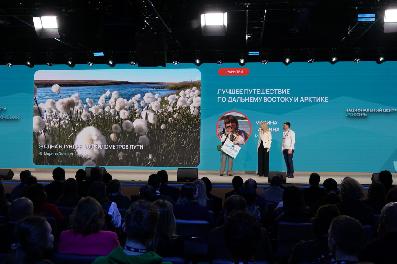 Гран-при и 3 миллиона рублей вручили Марине Галкиной, которая в одиночку за 36 дней преодолела в Чукотском автономном округе маршрут протяжённостью 700 километров.