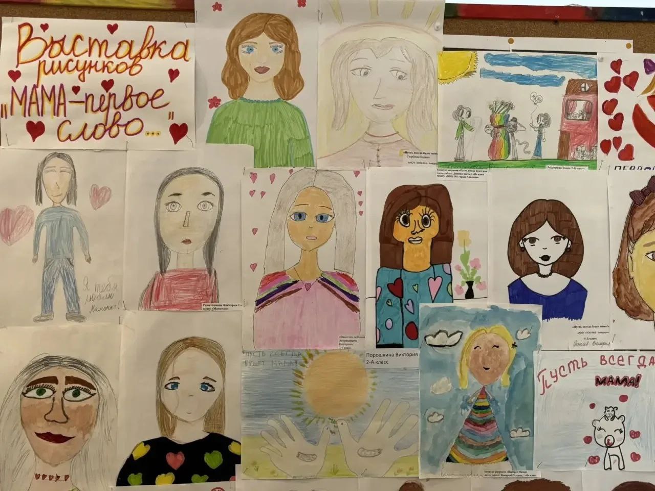 В честь самого нежного праздника - Дня женщин, в Основной школе города Анадырь открылась выставка рисунков юных талантов «МАМА - первое слово...».