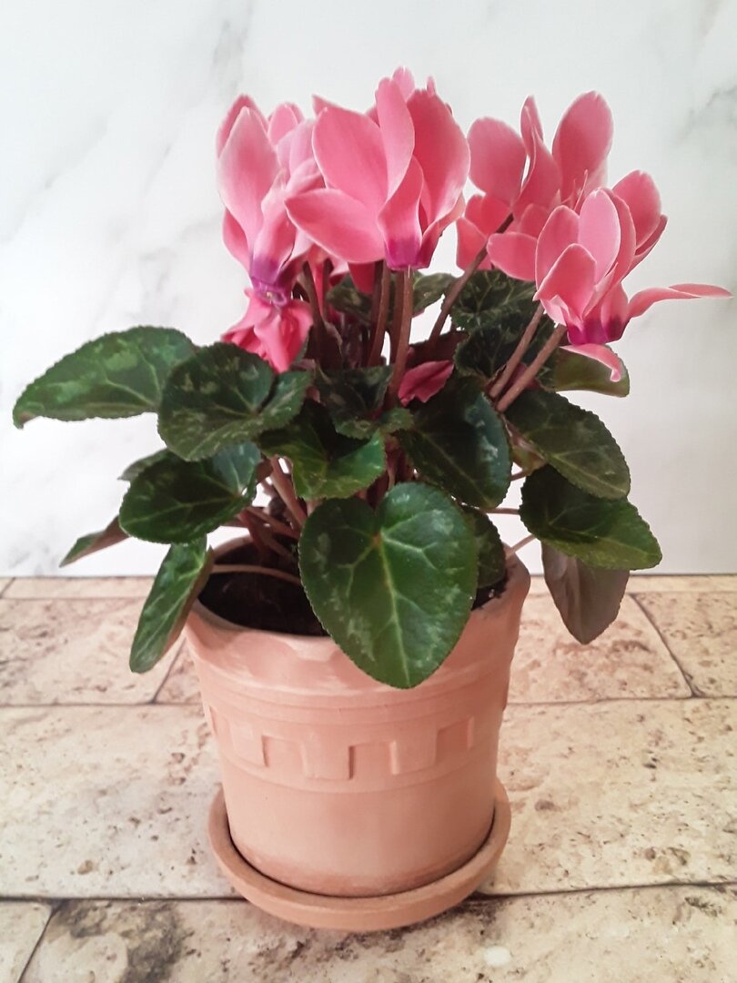 Полив по новому расписанию — через поддон — стал вечным ритуалом. Цикламен стал заметно крепче и участвовал в фотосессиях с другими растениями, радуя глаз до середины марта.