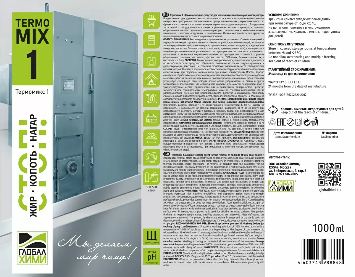 ТермоMIX 1 представляет собой профессиональное высококонцентрированное средство, созданное для устранения различных видов жиров, налета и копоти. Это инновационная формула обладающая высоким уровнем пенообразования, обеспечит надежное решение для самых сложных загрязнений.