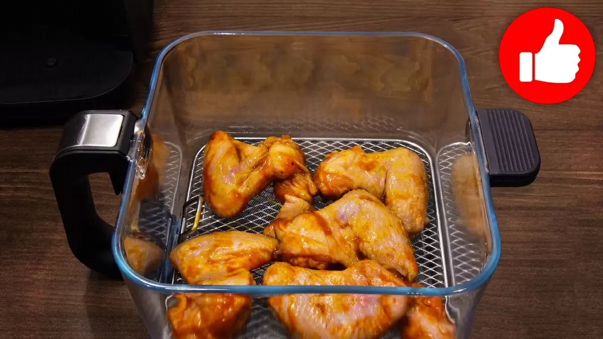 Перед тем как начать готовить, слегка смажьте решетку аэрогриля растительным маслом. Выложите крылышки на решетку так, чтобы они не соприкасались друг с другом. Если ваша аэрогриль позволяет, оборудование можно разделить на два захода, готовя по пять крылышек за раз. Выберите режим "Крылышки" или "Мультиповар" и установите температуру на 200°C. Время приготовления составит всего 12 минут, и вскоре вы сможете насладиться аппетитными хрустящими крылышками.