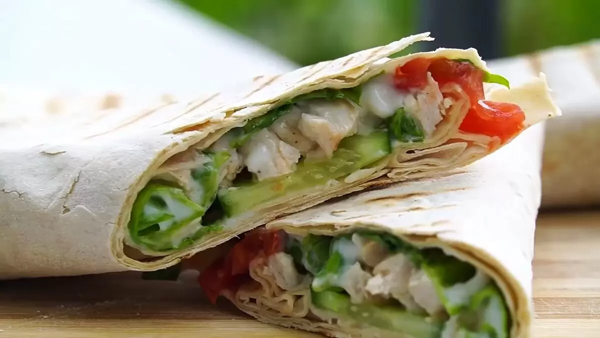 Начните с того, что нарежьте овощи на небольшие кусочки, чтобы они удобно укладывались в лаваш. Куриную грудку следует разделить на части, а затем приправить солью и черным перцем — это добавит блюду яркие ноты вкуса.