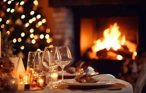 - Скатерти и салфетки. Классические белые или красные оттенки с золотыми акцентами мгновенно создают торжественное настроение.