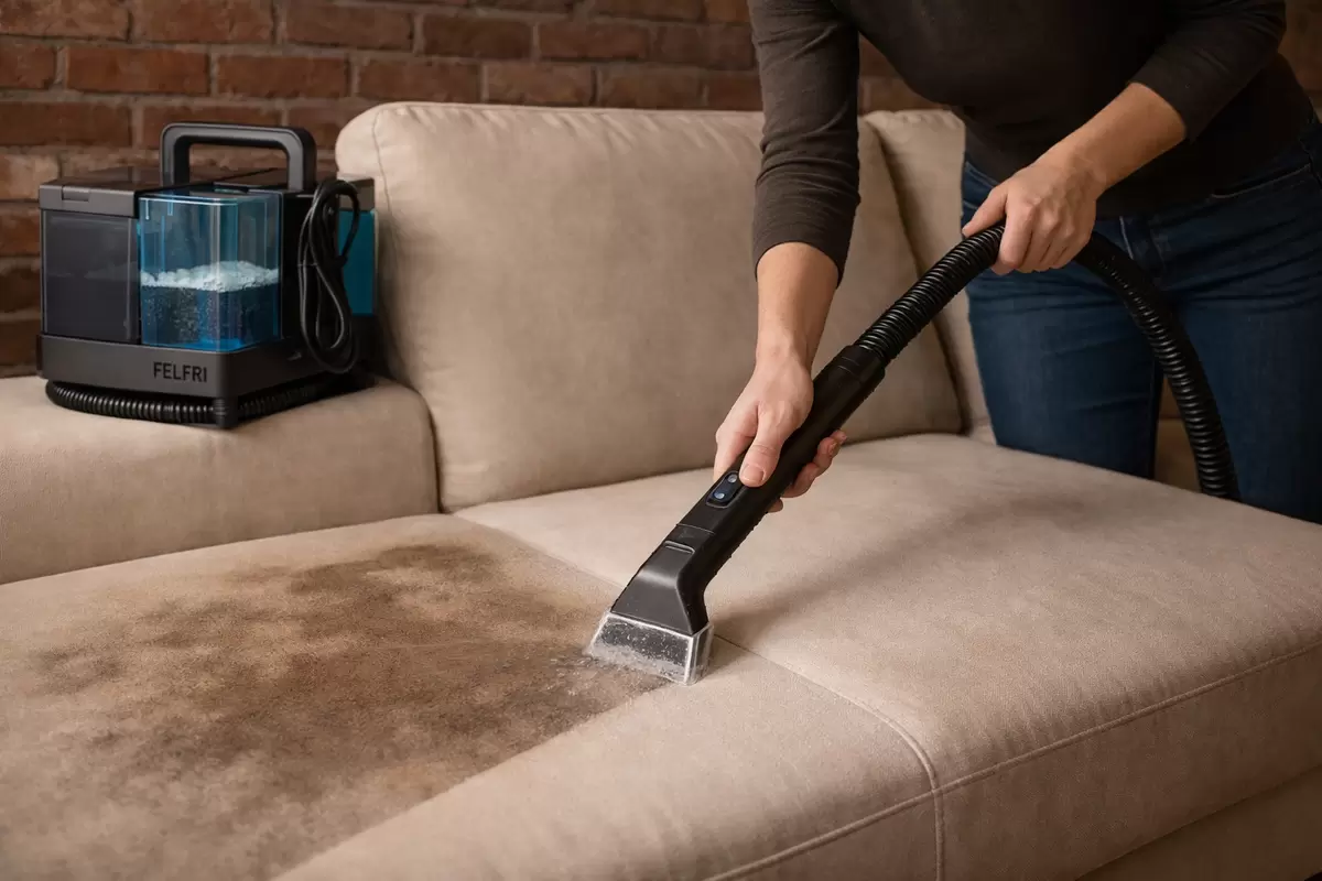 Моющий пылесос для мебели работает по-иному: он подает воду или пену внутрь ткани и одновременно вытягивает загрязнения наружу. Это позволяет добиться лучших результатов, если применять его правильно.