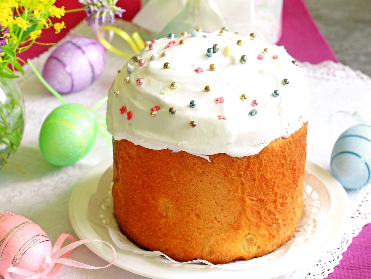 После выпекания куличи остужаем, извлекая из форм, и украшаем по вкусу. Например, идеально подойдет белковая глазурь. Такой кулич станет настоящим шедевром на любом празднике!