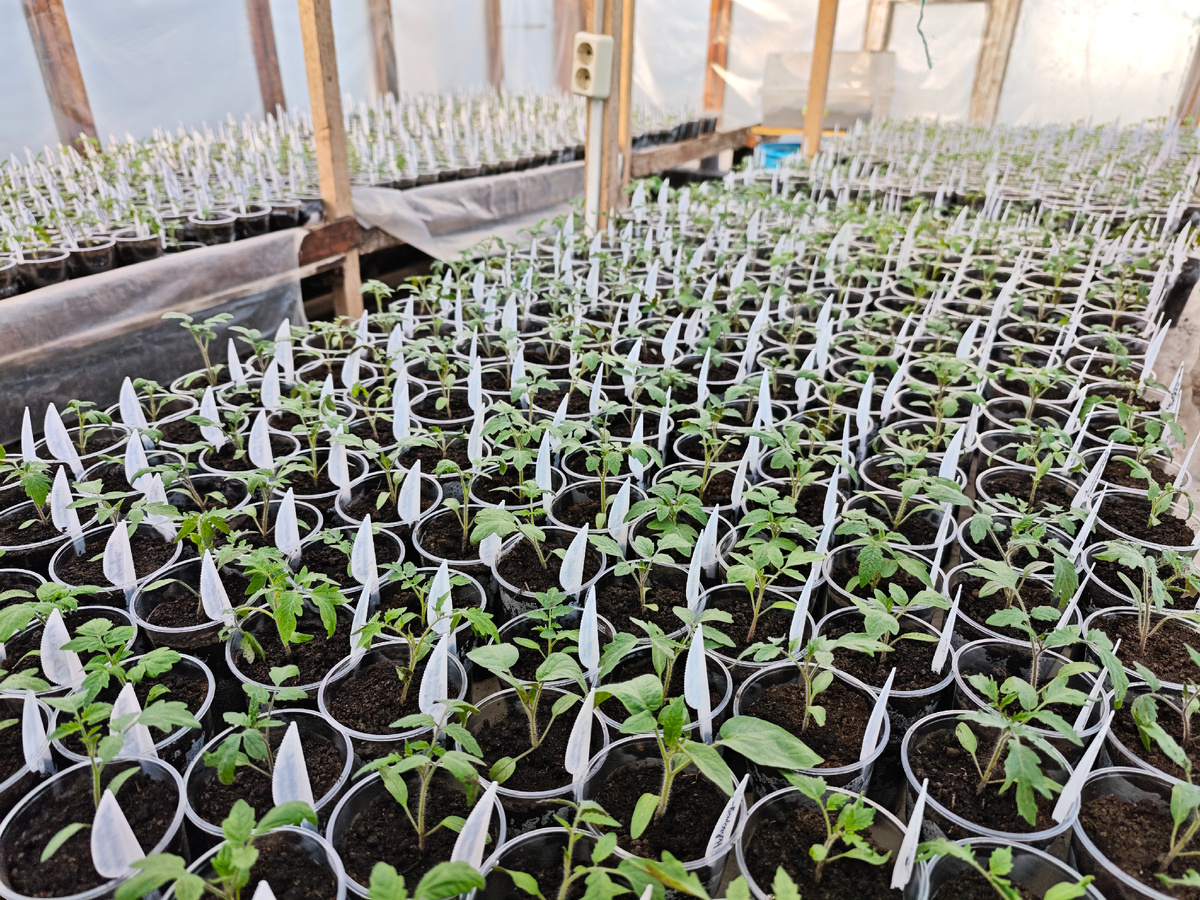 Эти томаты и перцы выращиваются для продажи, а также для приготовления семян. Семена отправляются в течение всего года, а в этом процессе активно помогает вся семья. В частности, поддерживают муж и двое детей — Дима и Артём, а также родители. Все работы по уходу за рассадой выполняются самостоятельно.