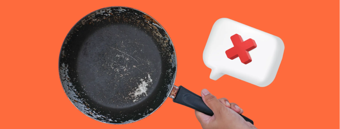 Царапины на антипригарной поверхности могут появляться вследствие различных факторов: от использования металлических лопаток и вилок до интенсивной чистки. Легкие контузии могут не представлять собой серьезной проблемы. Однако глубокие царапины могут привести к отслаиванию покрытия, что увеличивает вероятность попадания частиц в пищу. Хотя многие из этих частиц безопасны для здоровья, кушать блюда с добавлением посторонних веществ бывает неприятно.