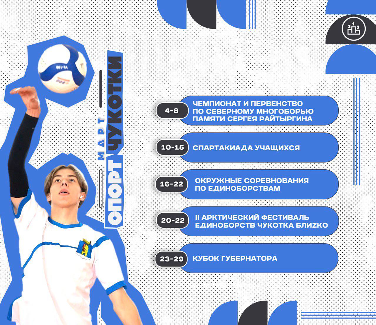 Завершает месяц легендарная гонка на собачьих упряжках, которая пройдёт с 29 марта по 9 апреля. Приём заявок уже открыт. Финиш и награждение — 9 апреля в Лорино. Важно: Каждый этап гонки посвятят памяти защитников, павших в ходе СВО.